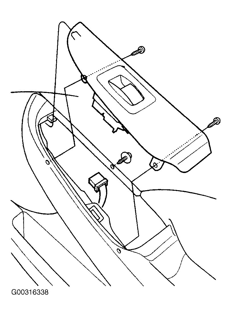 Remove passenger's door panel. See DOOR PANEL under REMOVAL & INSTALLATION. Remove the screws and the passenger's switch assembly. See Fig 1 . Remove the five mounting screws. Remove the passenger's switch (A) from the panel (B). See Fig 2 . Check for continuity between the terminals in each switch position. See Fig 3 . See PASSENGER'S POWER WINDOW SWITCH table.