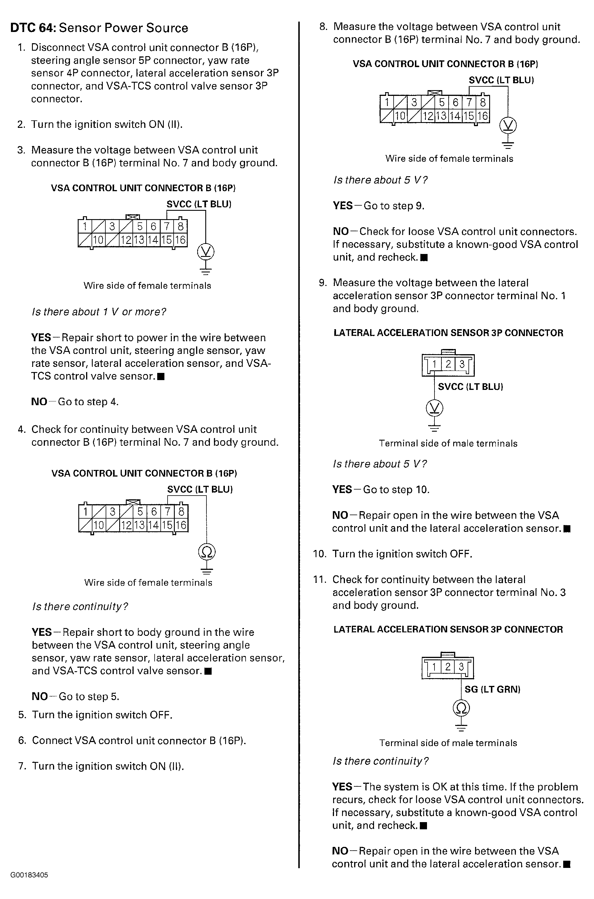 Fig 1: DTC 64: Sensor Power Source Trouble Shooting Chart