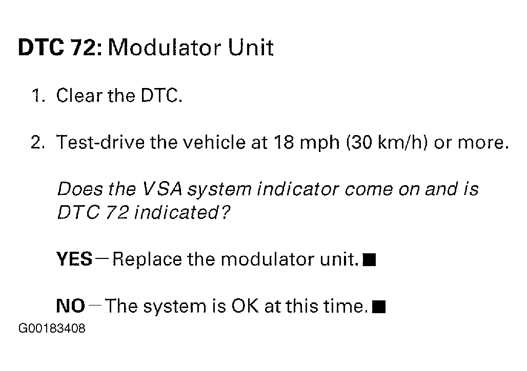 Fig 1: DTC 72: Modulator Unit Trouble Shooting Chart