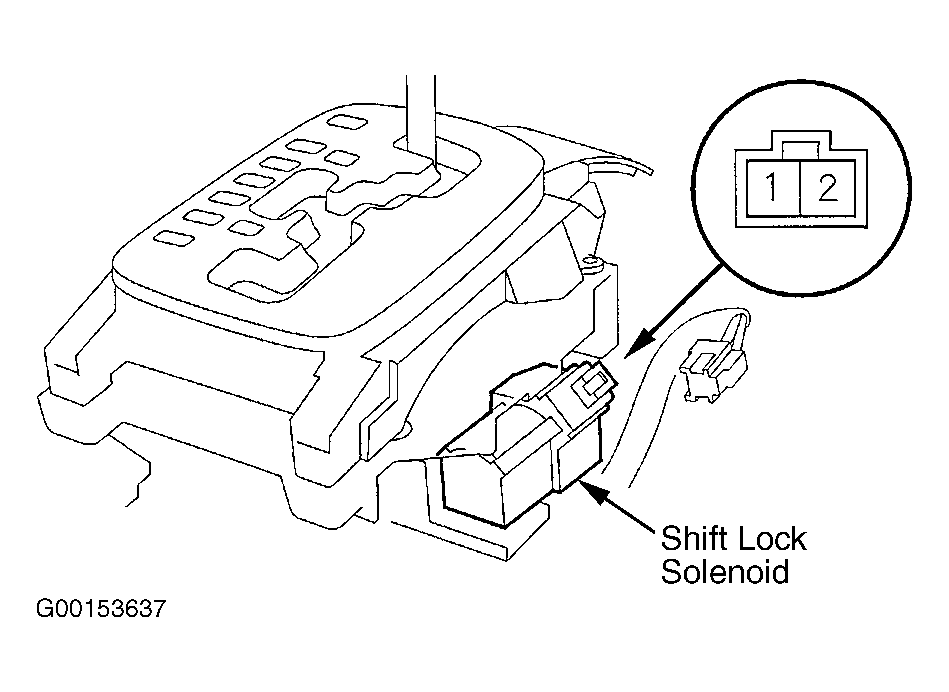 - If the solenoid does not work, replace the shift lock solenoid. See SHIFT LOCK SOLENOID under REMOVAL & INSTALLATION.