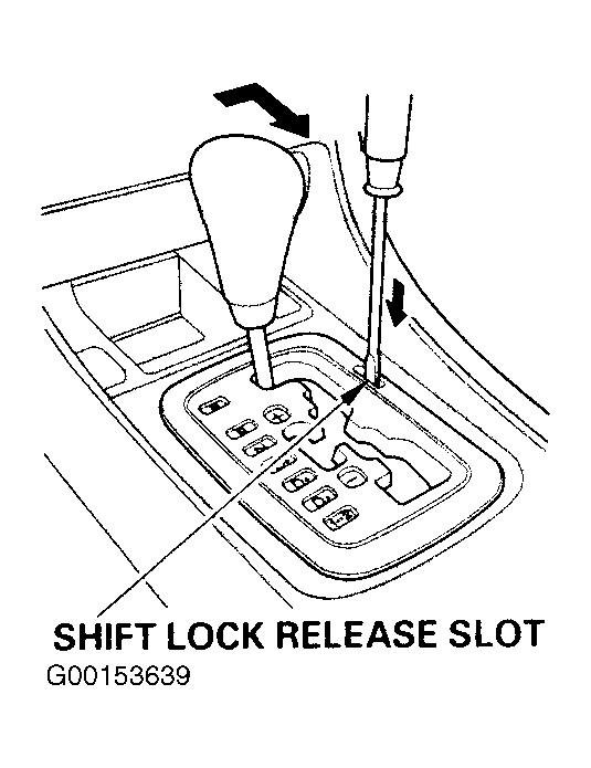 - Check that the shift lock releases when the release button is pushed, and check that it locks when the release button is released. See Figure.