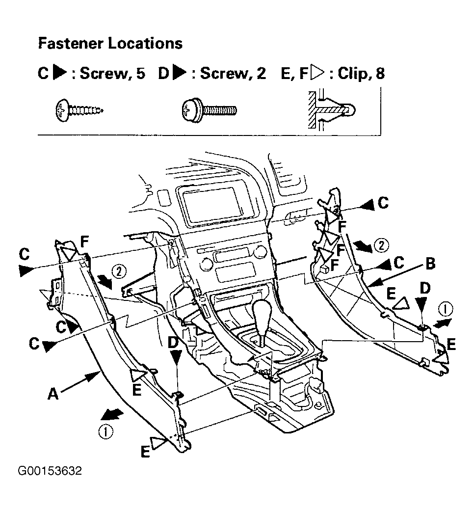 When prying with a flat-tip screwdriver, wrap it with protective tape, and apply protective tape around the related parts, to prevent damage. Take care not to scratch the front seat, dashboard, and related parts.