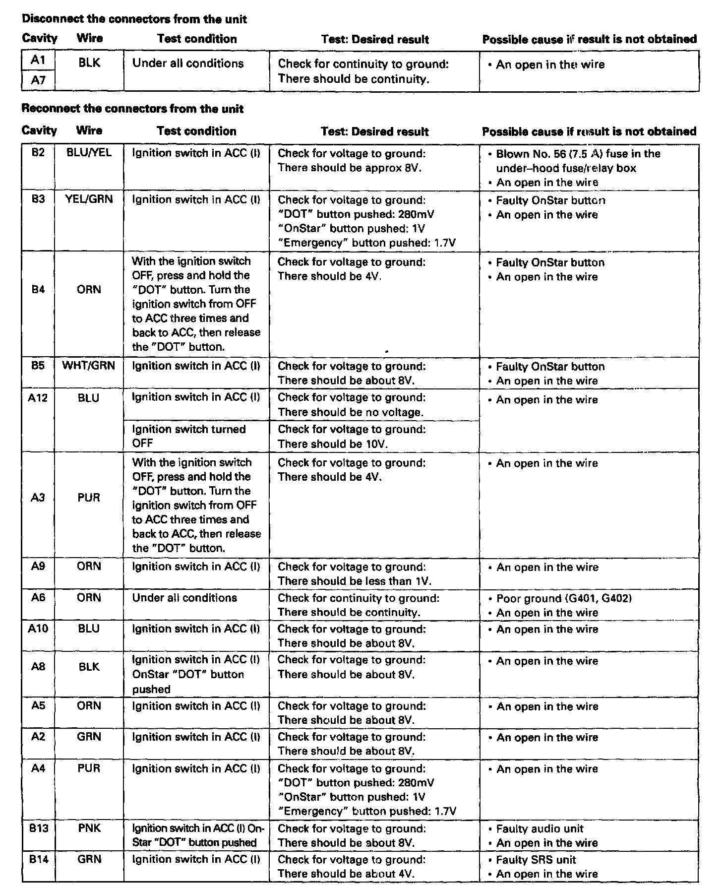 OnStar System Interface Unit Input Test