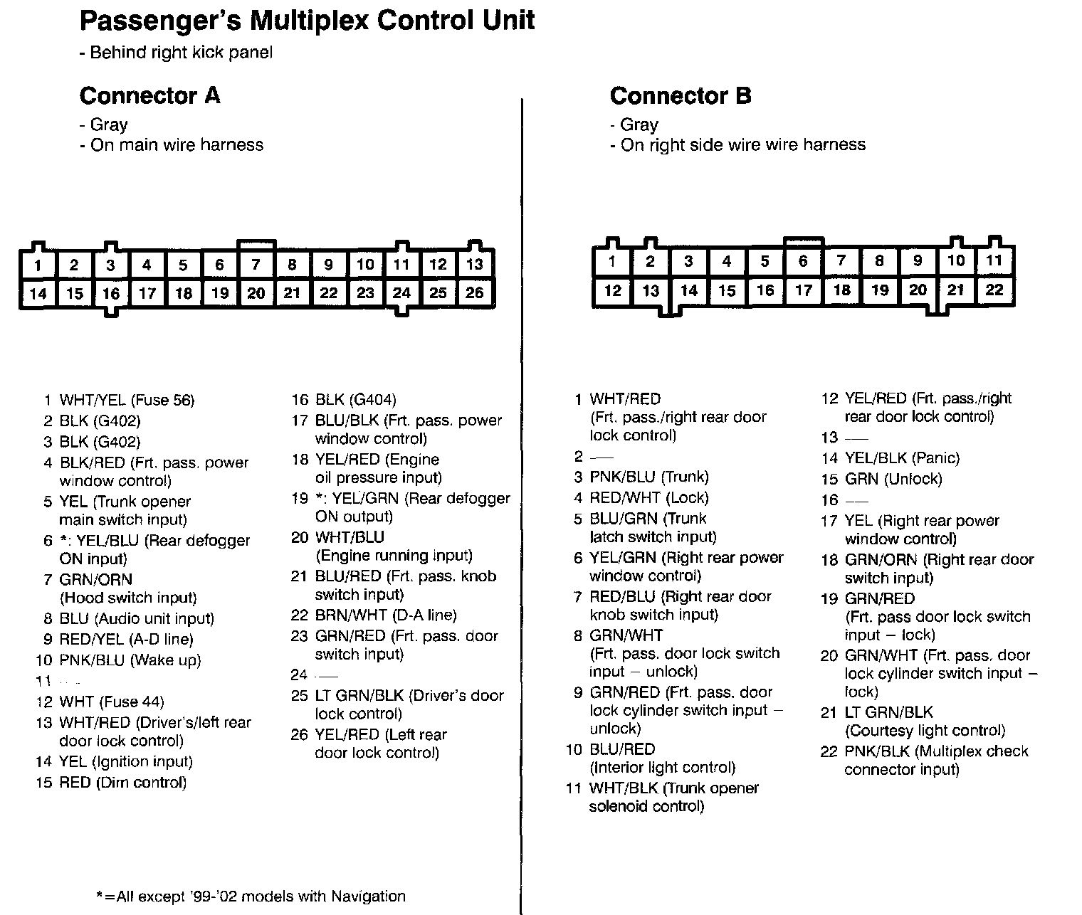 Passenger's Multiplex Control Unit Connectors A And B: