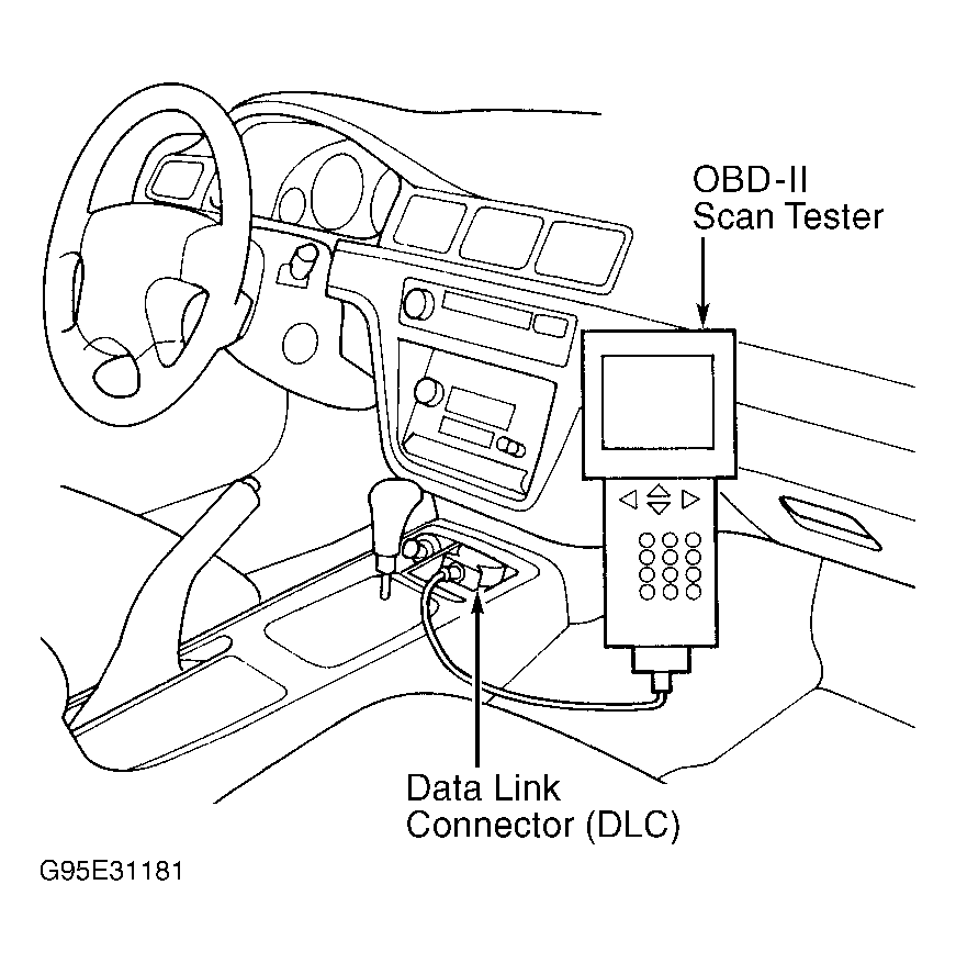 Locate Data Link Connector (DLC) in center console, behind ash tray. See Fig 1 -Fig 3 . Connect and operate scan tool in accordance with manufacturer's instructions.