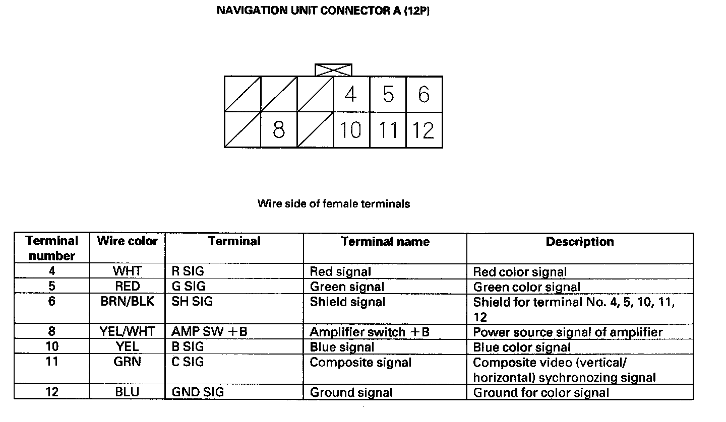 Navigation Unit Inputs And Outputs For Connector A (12P):