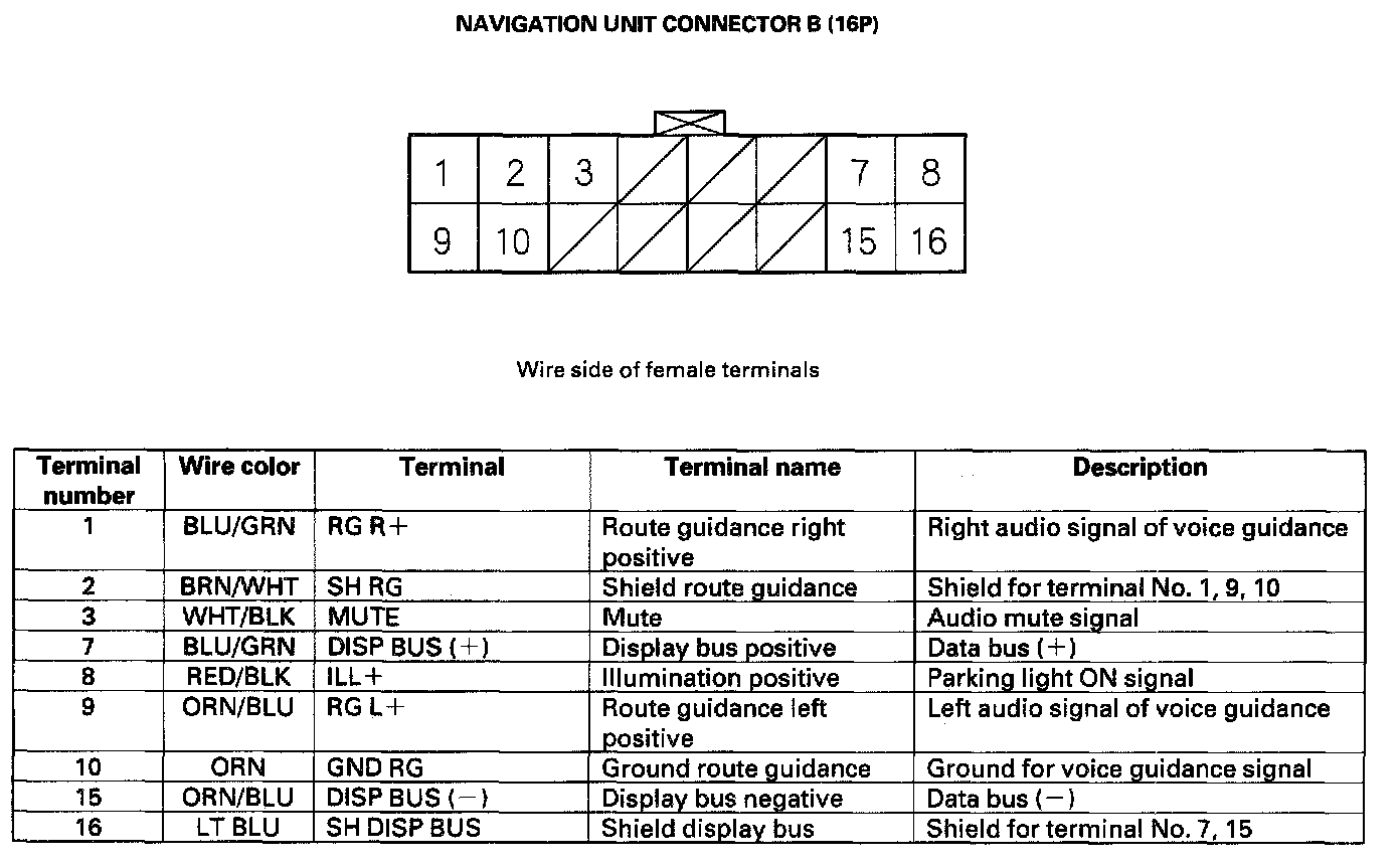 Navigation Unit Inputs And Outputs For Connector B (16P):