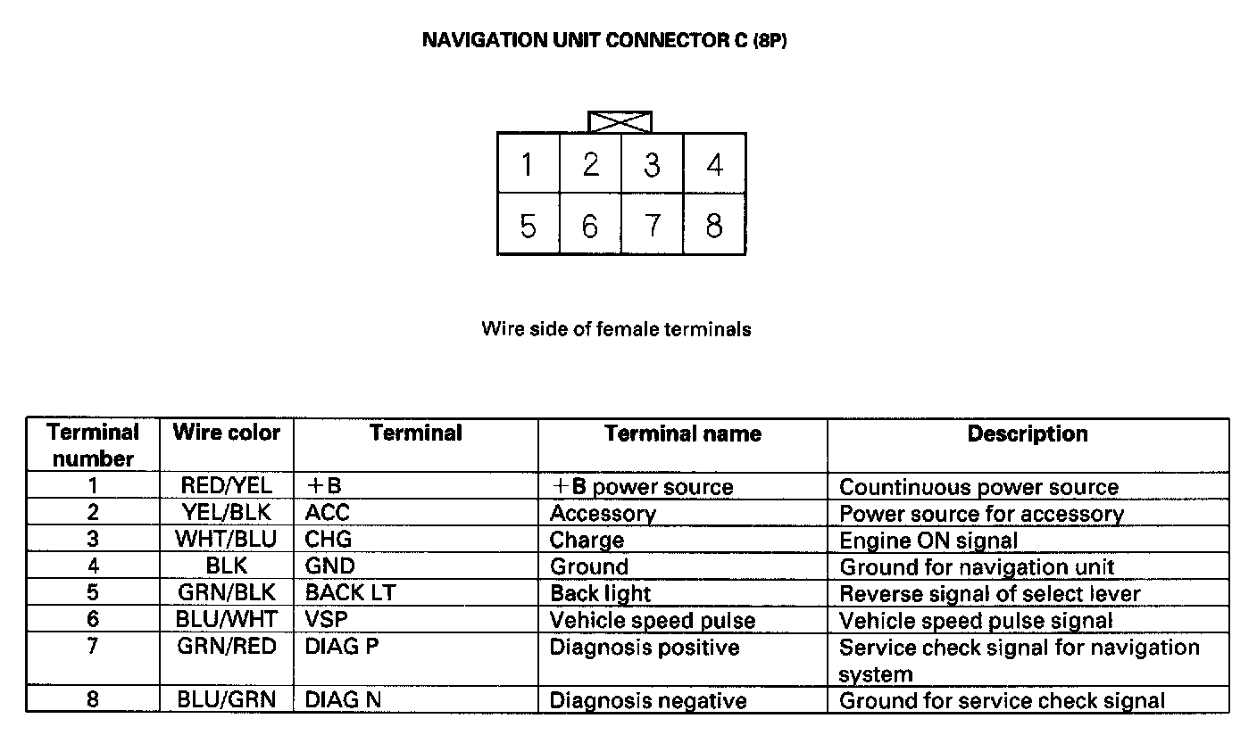 Navigation Unit Inputs And Outputs For Connector C (8P):