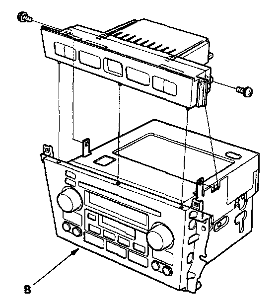 3. Remove the screws and climate control unit (A) from the audio unit (B).