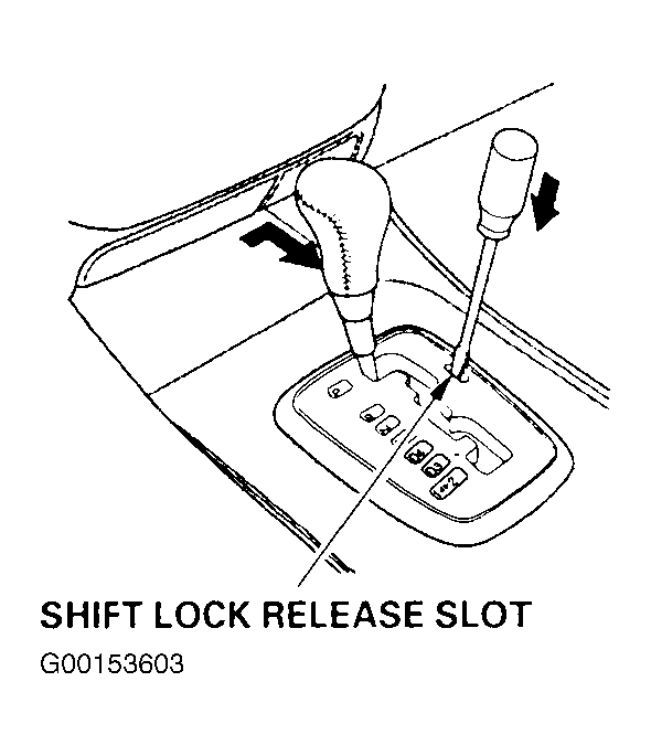 - Shift the gearshift lever out of the "P" position to check that the shift lock solenoid operates. Does the gearshift lever shift out of the "P" position? If yes, go to next step. If no, go to SHIFT INTERLOCK SYSTEM .