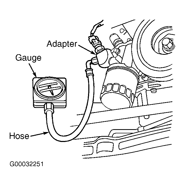 8. Remove VTEC oil pressure switch. Install Adapter (07NAJ-P07010A), Hose (07MAJ-PY40120) and Gauge (07406-0070300). See Fig 1 . Reinstall VTEC oil pressure switch. Reconnect VTEC solenoid valve single pin harness connector and VTEC oil pressure switch 2-pin harness connector. Start engine and run at 3000 RPM with no load (in park or neutral) until radiator fan comes on. Connect remote tachometer under hood. Check oil pressure at 1000, 2000 and 3000 RPM. Checks should be done in under one minute because of engine running with no load. If oil pressure is less than 49 kPa, go to next step. If oil pressure is not as specified, test VTEC solenoid valve. See RELAYS & SOLENOIDS in SYSTEM & COMPONENT TESTING article.
