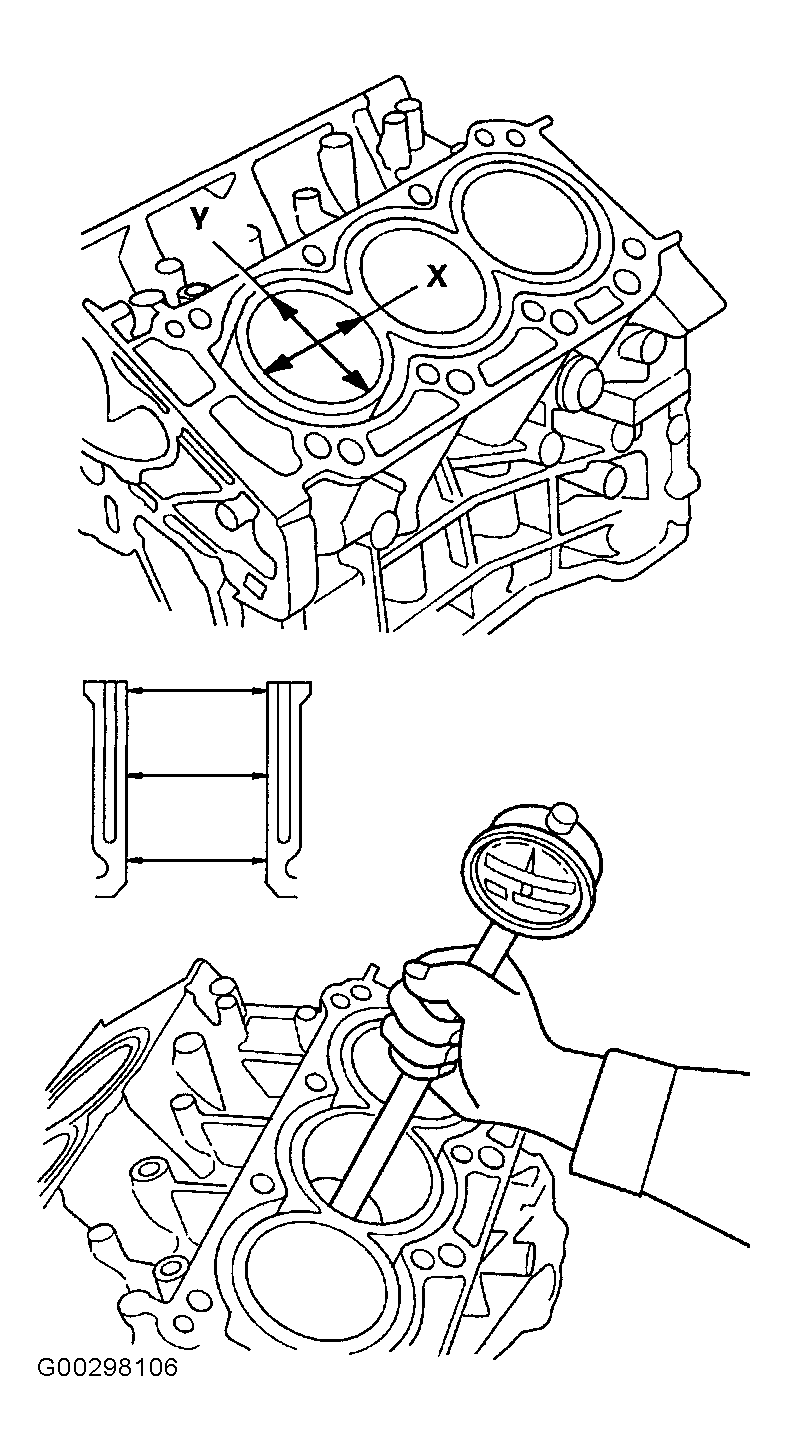 Application Specification - In. (mm) Piston Diameter Standard (New) 3.5029-3.5033 (88.975-88.985) Service Limit 3.5026 (88.965) Oversize Piston Diameter .25 3.5128-3.15132 (89.225-89.235) .50 3.5226-3.5230 (89.475-89.485) - Measure wear and taper in directions X and Y at 3 levels in each cylinder. See Fig 2