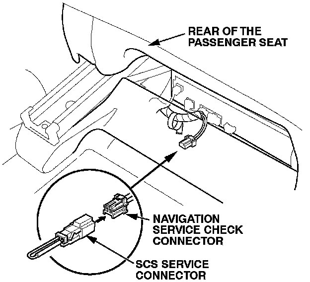 10. Attach the SCS service connector to the navigation service check connector (located behind the navigation unit).
