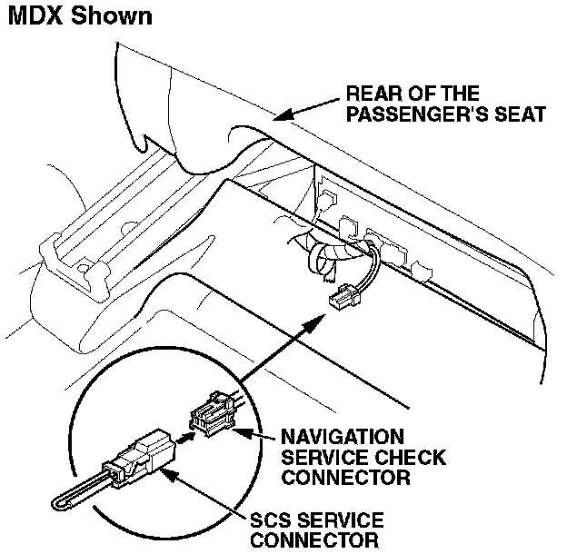 10. Attach the SCS service connector to the navigation service check connector (located behind the navigation unit).