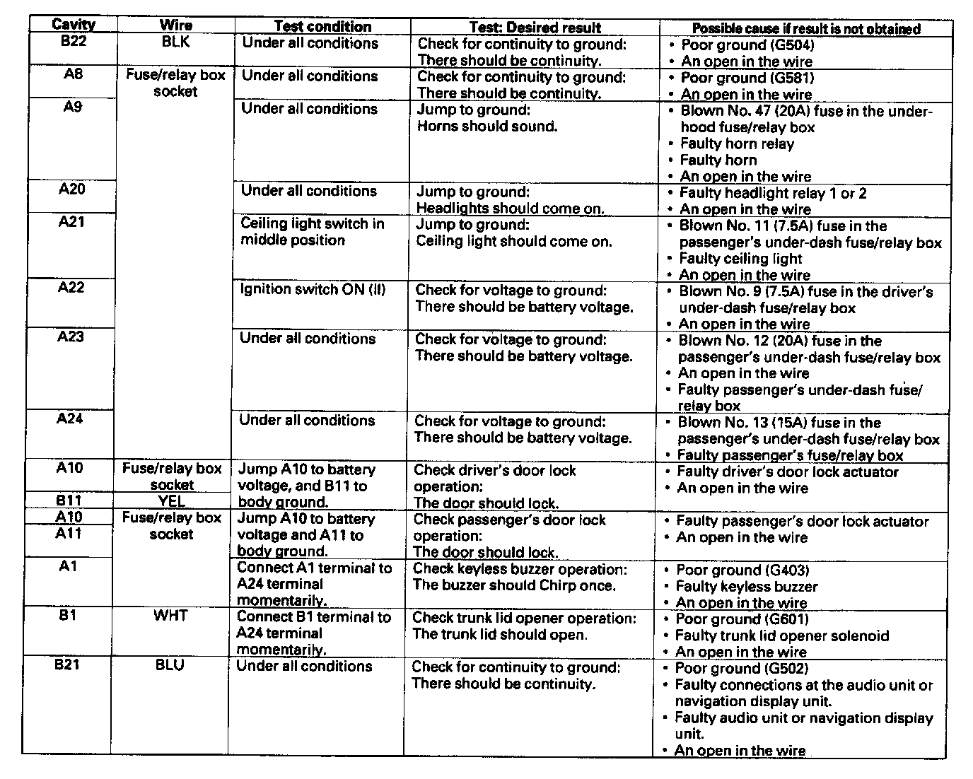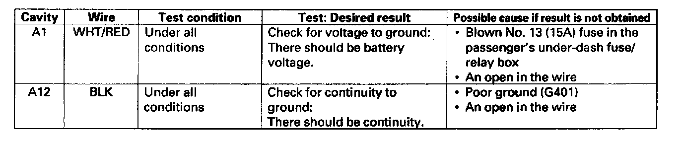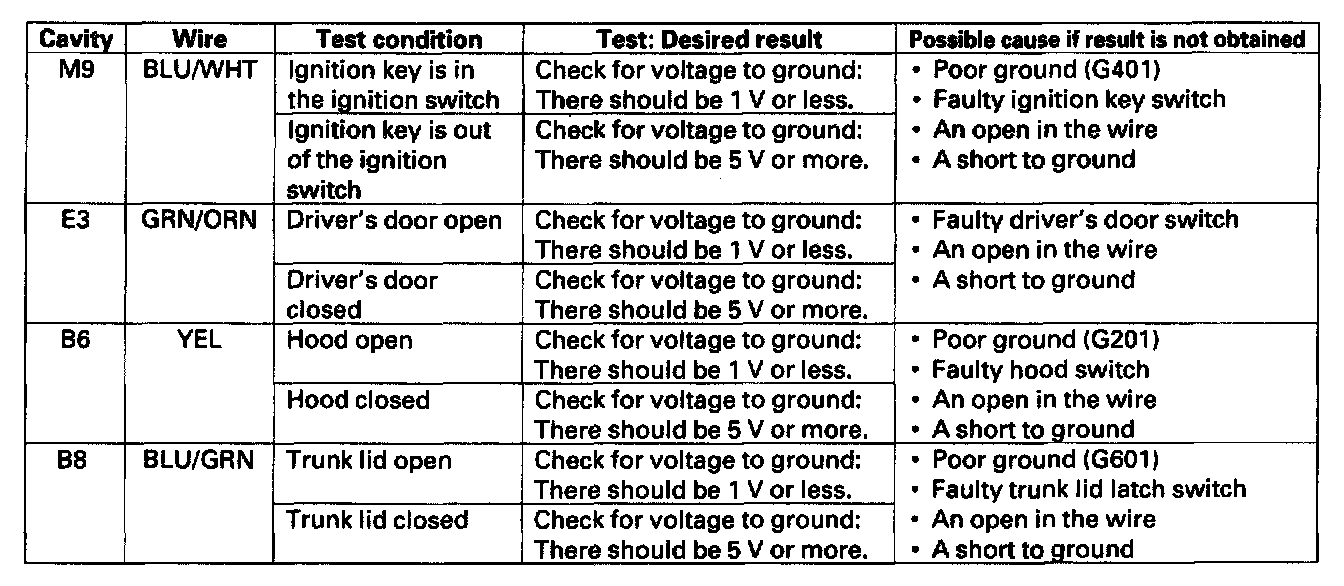 Home >> Acura >> 2003 >> 3.2CL V6-3.2L SOHC >> Repair and Diagnosis >> Body and Frame >> Locks >> Keyless Entry >> Keyless Entry Module >> Testing and Inspection