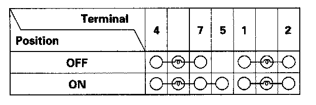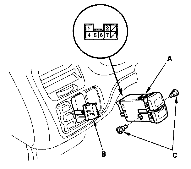 3. Check for continuity between the terminals in each switch position according to the table. If there is no continuity, replace the bulbs (C) or the switch.
