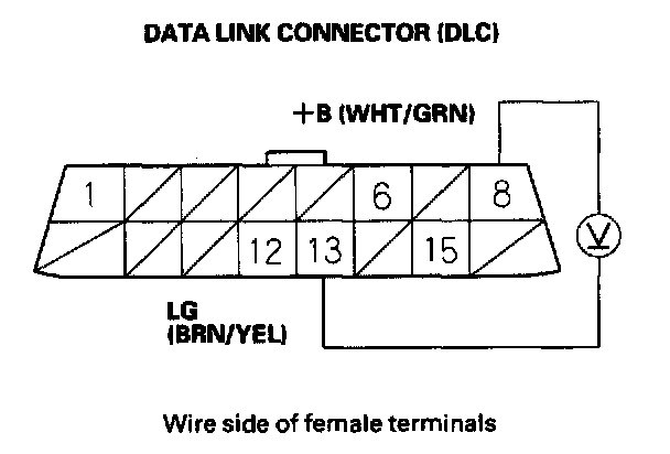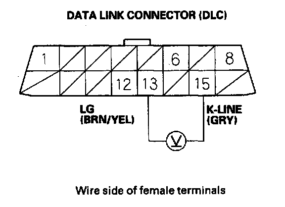 13. Measure voltage between DLC terminals No.13 and No.15.