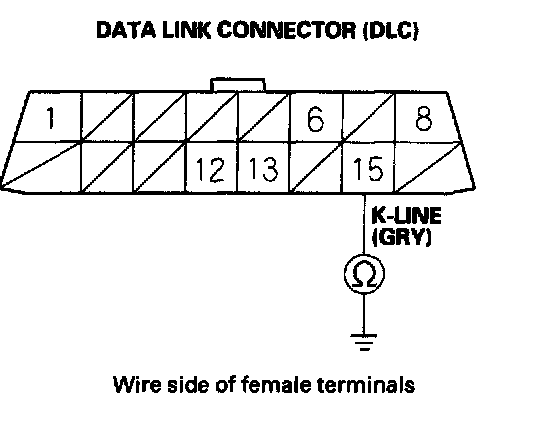 8. Check for continuity between DLC terminal No.15 and body ground.