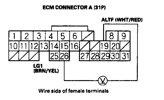 3. Measure voltage between ECM connector terminals A19 and A26.
