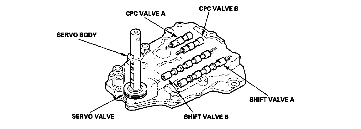 The servo body is on the main valve body. It contains the servo valve, the shift valve A, the shift valve B. and CPC valves A and B.