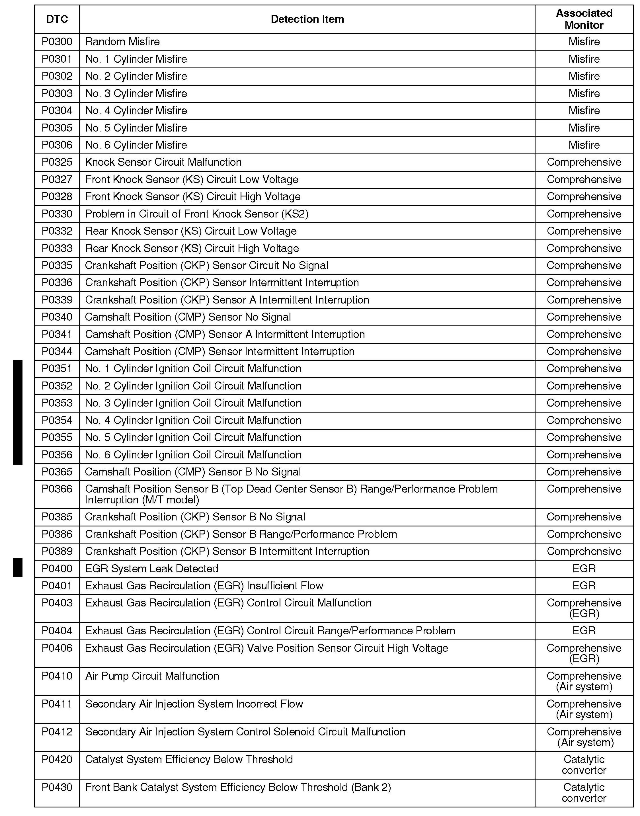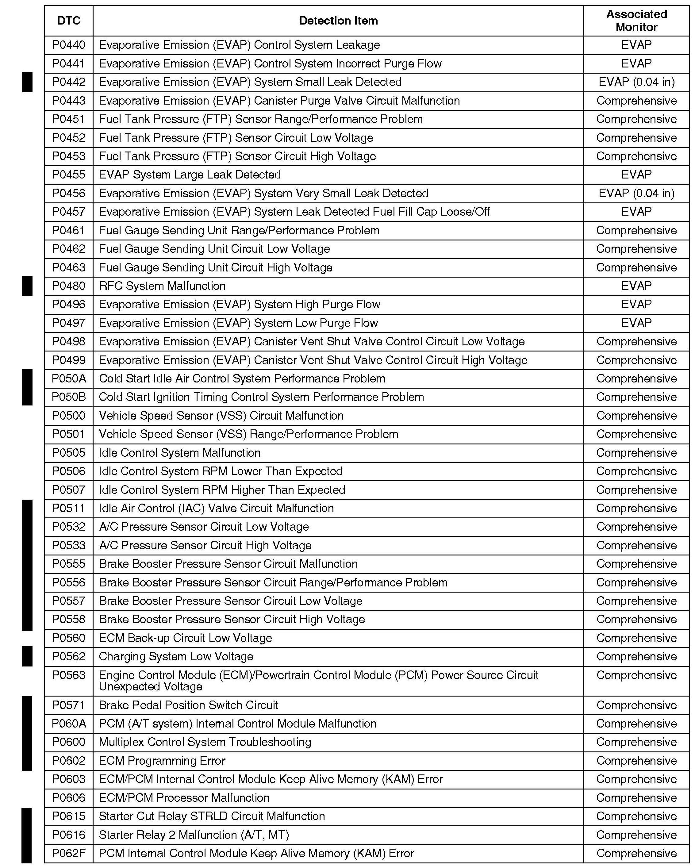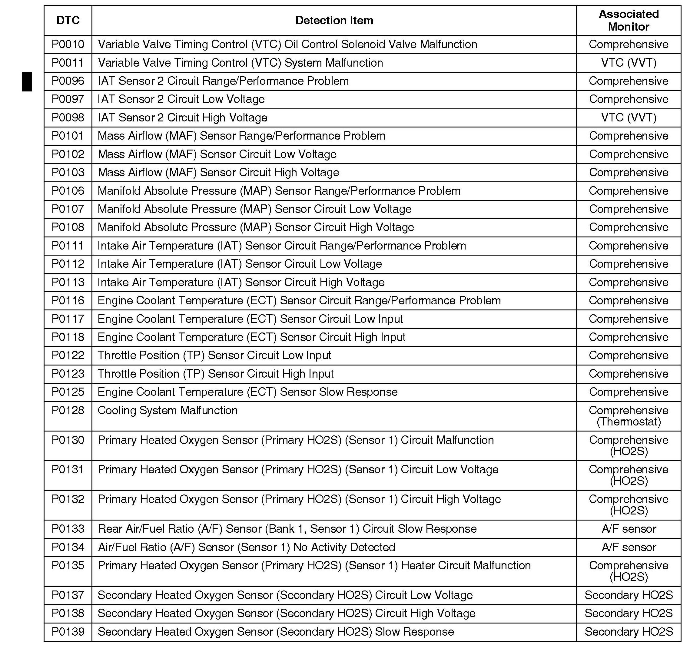OBD II DTCs and Their Associated Monitors