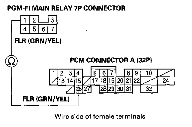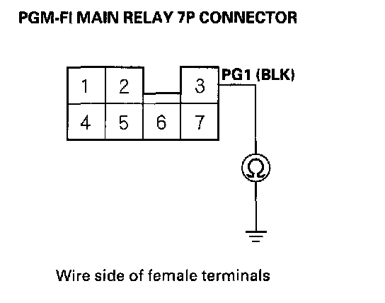 2. Check for continuity between body ground and the PGM-FI main relay 7P connector terminal No.3.