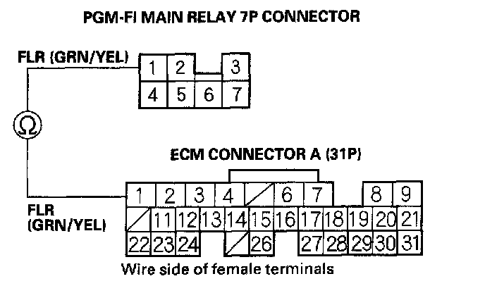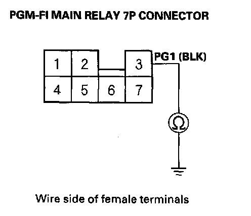 2. Check for continuity between body ground and PGM-FI main relay 7P connector terminal No.3.