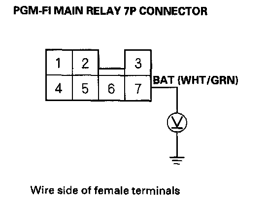 3. Measure voltage between body ground and PGM-FI main relay 7P connector terminal No.7.