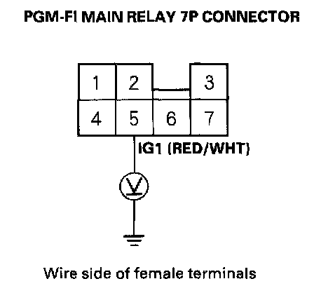 1. Turn the ignition switch OFF, then disconnect the PGM-FI main relay 7P connector.