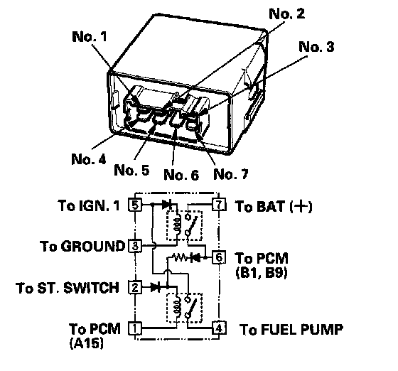 NO - Repair open in the wire between the PGM-FI main relay and the No.1 FUEL PUMP (15 A) fuse.