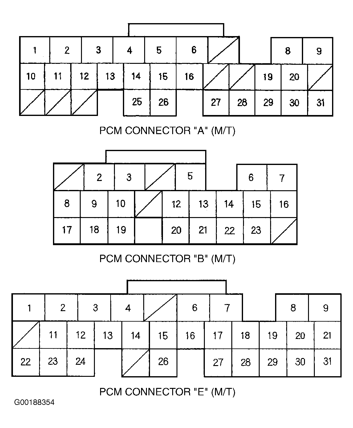 9. Turn ignition switch off. Disconnect PCM 32-pin harness "A" connector (A/T) or ECM 31-pin harness connector "A" (M/T). See Fig 1 or Fig 2 . Go to next step.