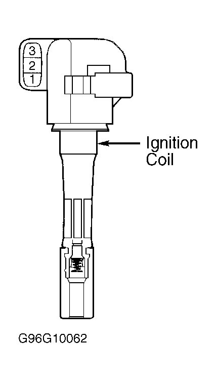 Turn ignition off. Measure primary winding resistance between ignition coil connector terminals No. 1 and 2. See Fig 1 . Resistance should be .9-1.1 ohms at 77°F (25°C). Replace coil if resistance is not within specification. Resistance specification for secondary winding is not available.