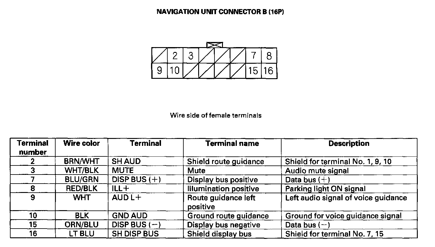 Navigation Unit Inputs And Outputs For Connector B (16P):