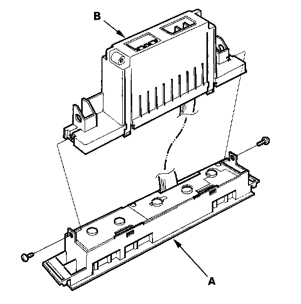 2. Remove the self-tapping screws, then carefully separate the climate control unit display (A) and control unit (B). Do not kink or pull on the wires between the display and the control unit. Do not touch the electronic components on the printed circuit board in the control unit.