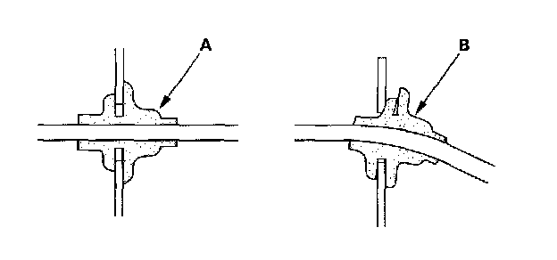 - Check for loose retainer (A) and rubber seals (B).