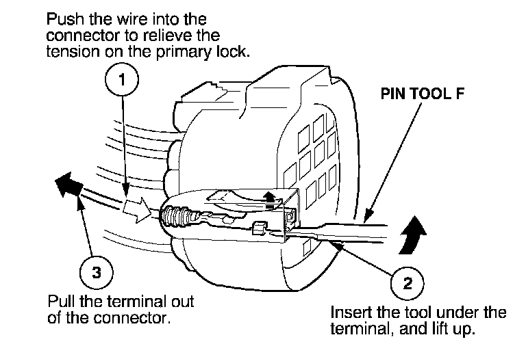 - If it has a secondary terminal lock, go to Connectors With a Secondary Lock. A secondary lock, found on most connectors on some models, is an additional locking device on the connector housing as a backup for the primary lock on the terminal.