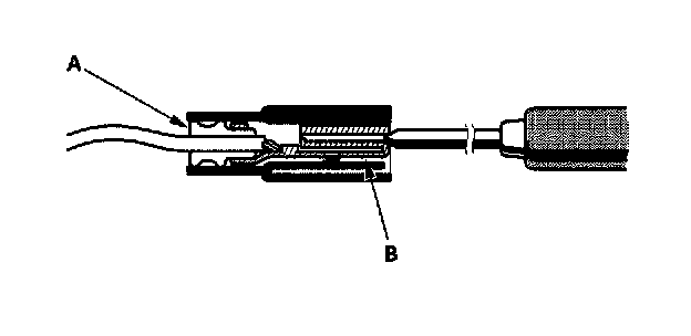 3. If you cannot get to the wire side of the connector or the wire side is sealed (A), disconnect the connector and probe the terminals (B) from the terminal side. Do not force the probe into the connector.