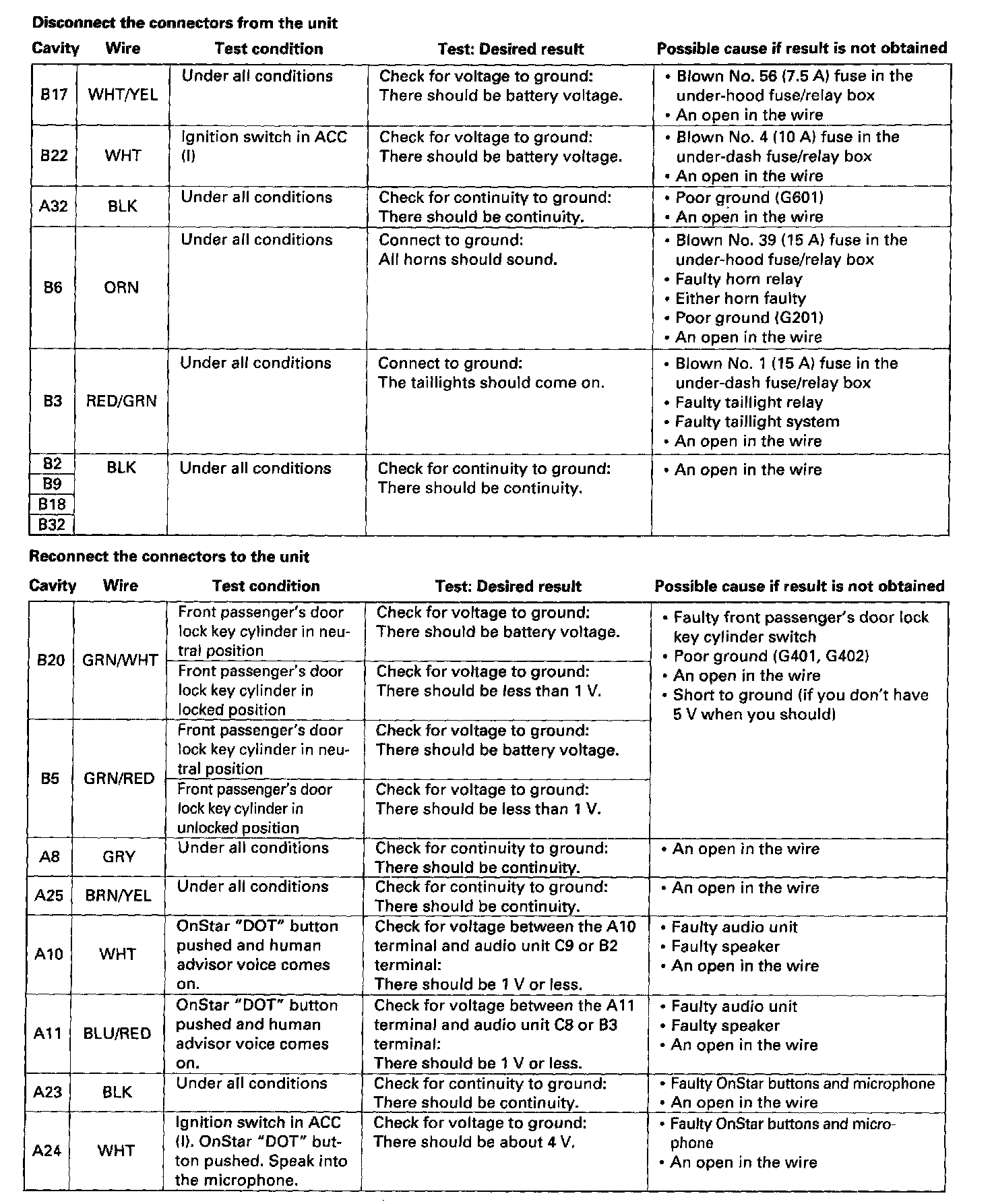 OnStar Control Unit Input Test1. Remove the rear seat (Refer to the PIN 61SZ305, for the items not shown).