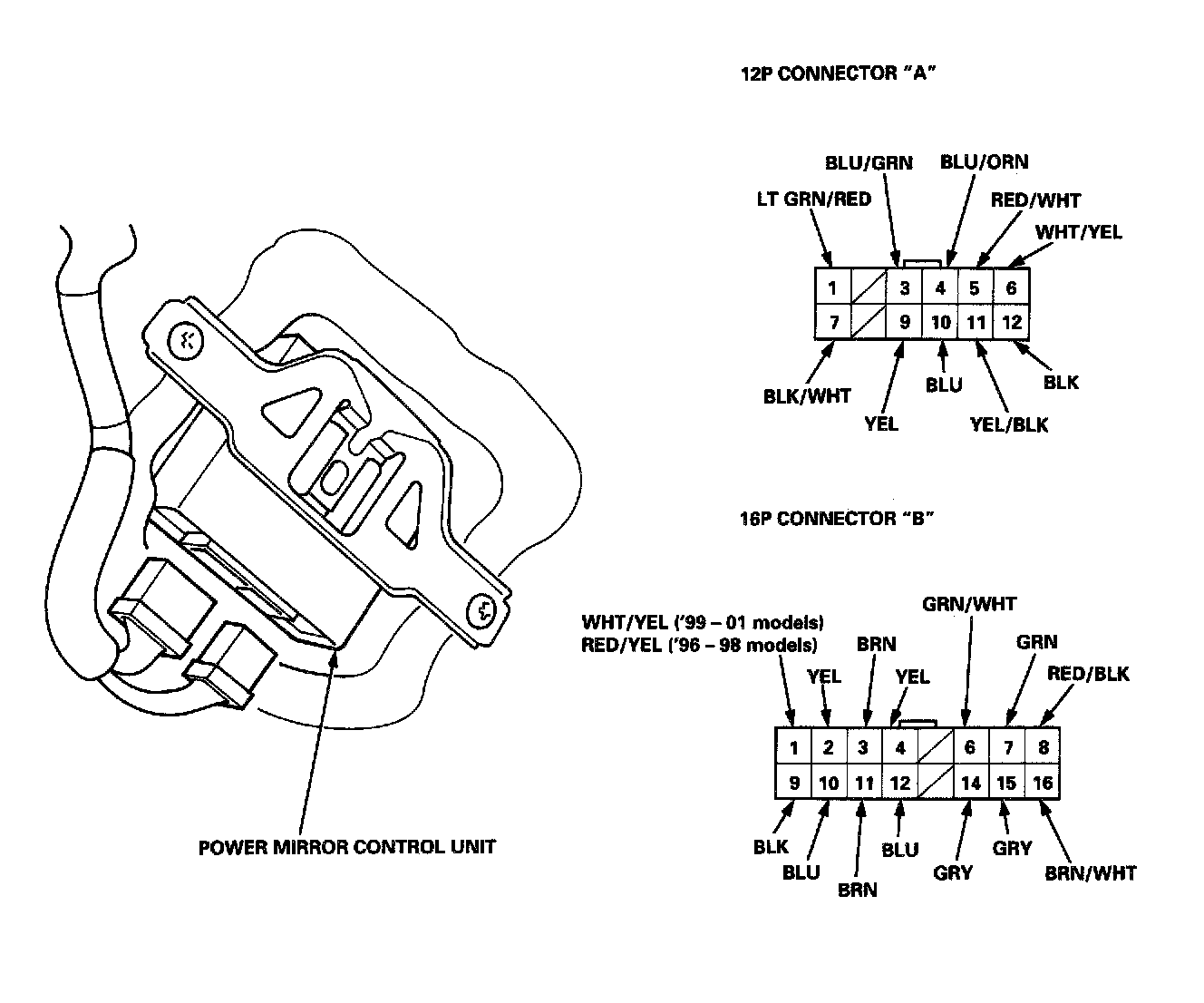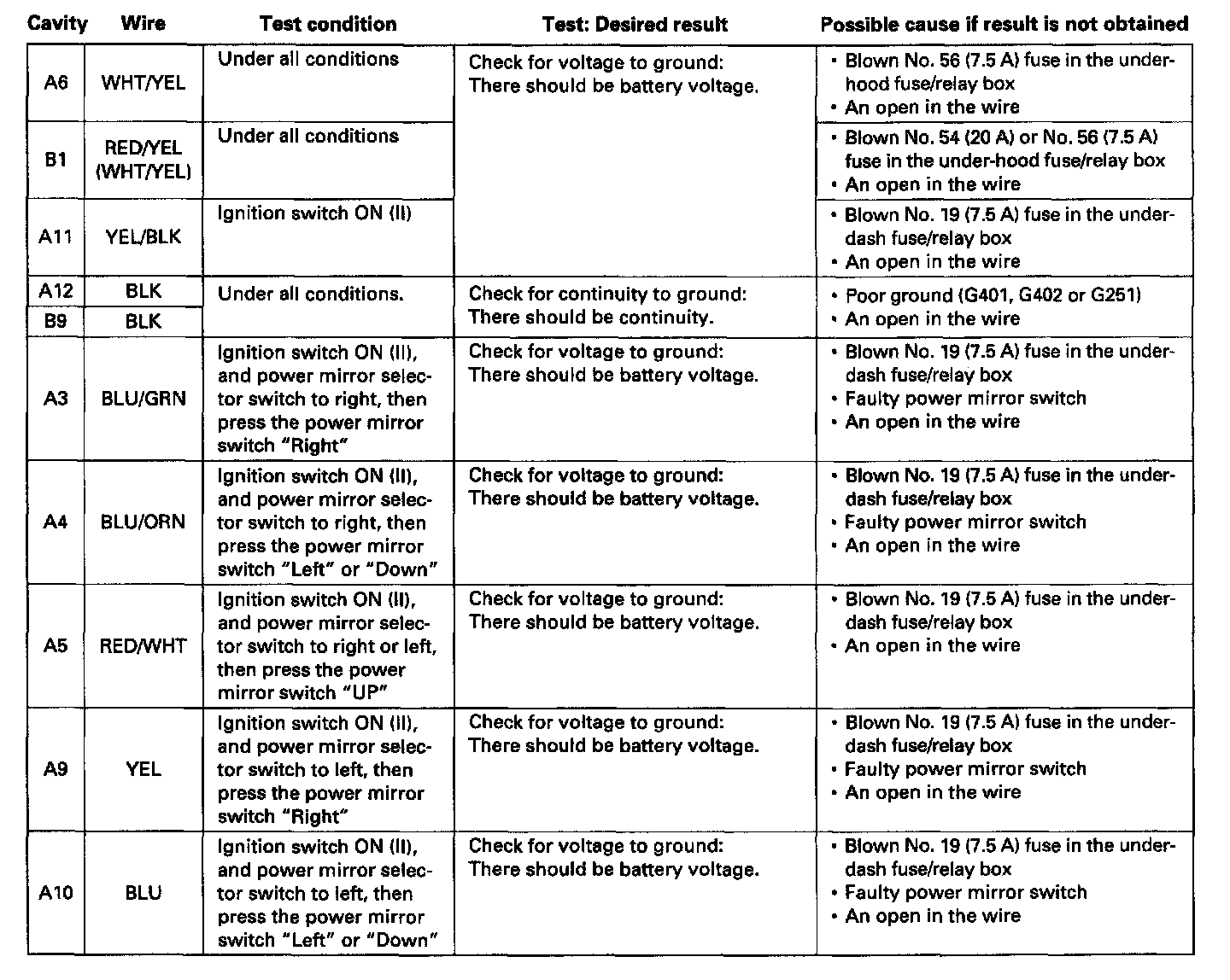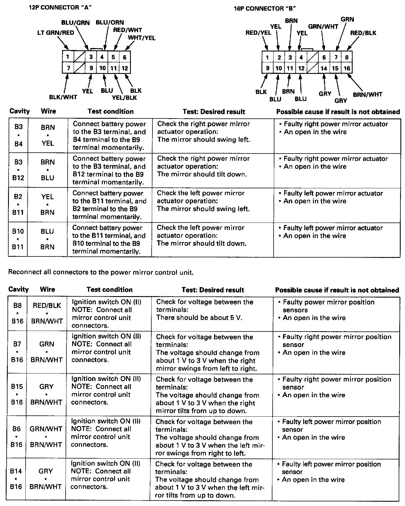 Home >> Acura >> 2003 >> 3.5RL V6-3474cc 3.5L >> Repair and Diagnosis >> Body and Frame >> Seats >> Memory Positioning Systems >> Testing and Inspection >> Component Tests and General Diagnostics >> Power Mirror Control Unit Input Test