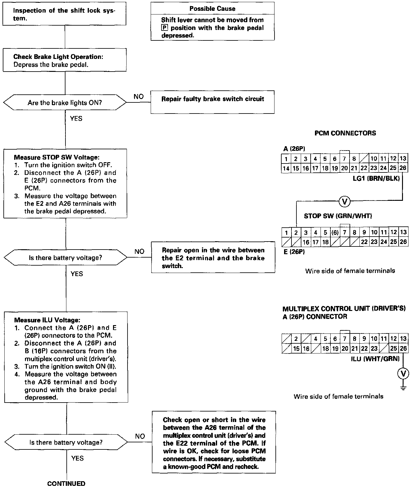 Interlock System - Shift Lock System Circuit Troubleshooting