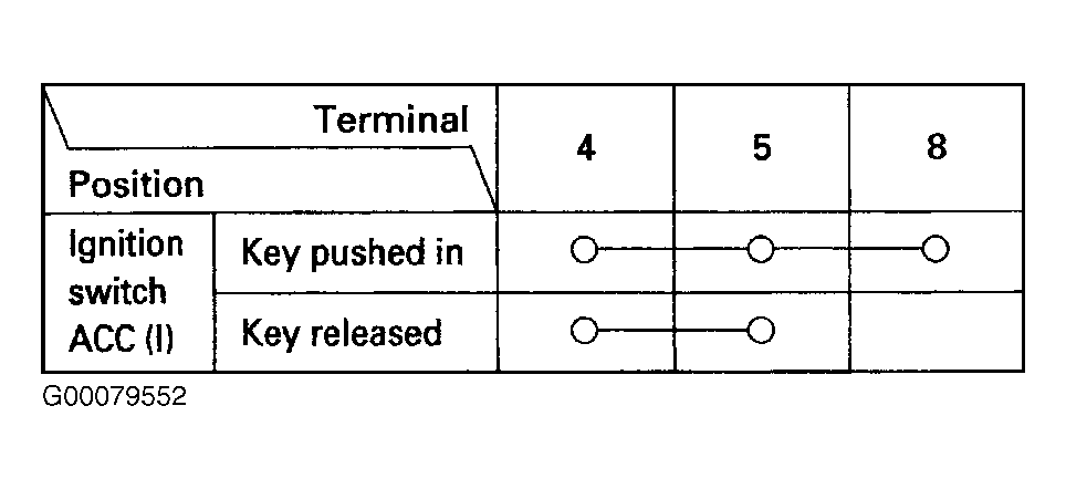 4. Check that the key cannot be removed with power and ground connector to the No. 4 and 8 terminals.