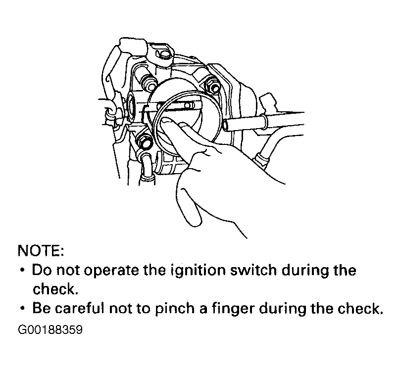 WARNING: DO NOT insert your fingers into installed throttle body when you turn ignition on or when ignition is on. Serious injury to your fingers will result if throttle valve is activated.