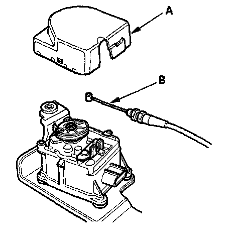 5. Remove the actuator cover (A), then remove the actuator cable (B) from the actuator.