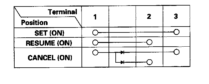 - If there is continuity, and it matches the table, but switch failure occurred on the cruise control unit input test, check and repair the wire harness on the switch circuit.