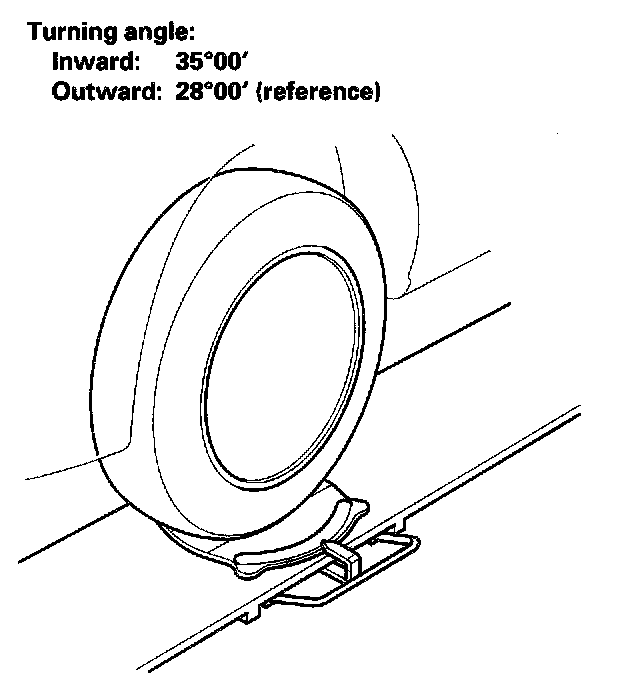 2. Check the toe. If it is correct, but the turning angle is not within the specification, check for bent or damaged suspension components.