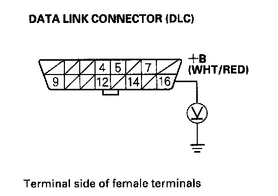 1. Measure voltage between DLC terminal No.16 and body ground.