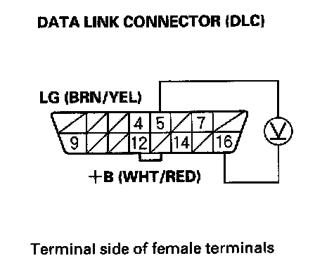 3. Measure voltage between DLC terminals No.5 and No.16.