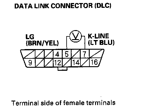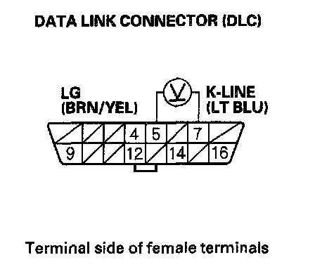 13. Measure voltage between DLC terminals No.5 and No.7.