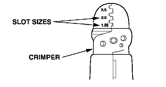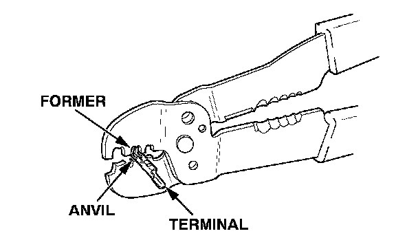 4. Position the terminal in the crimping tool slot with the solid portion of the terminal toward the anvil and the open section toward the former.
