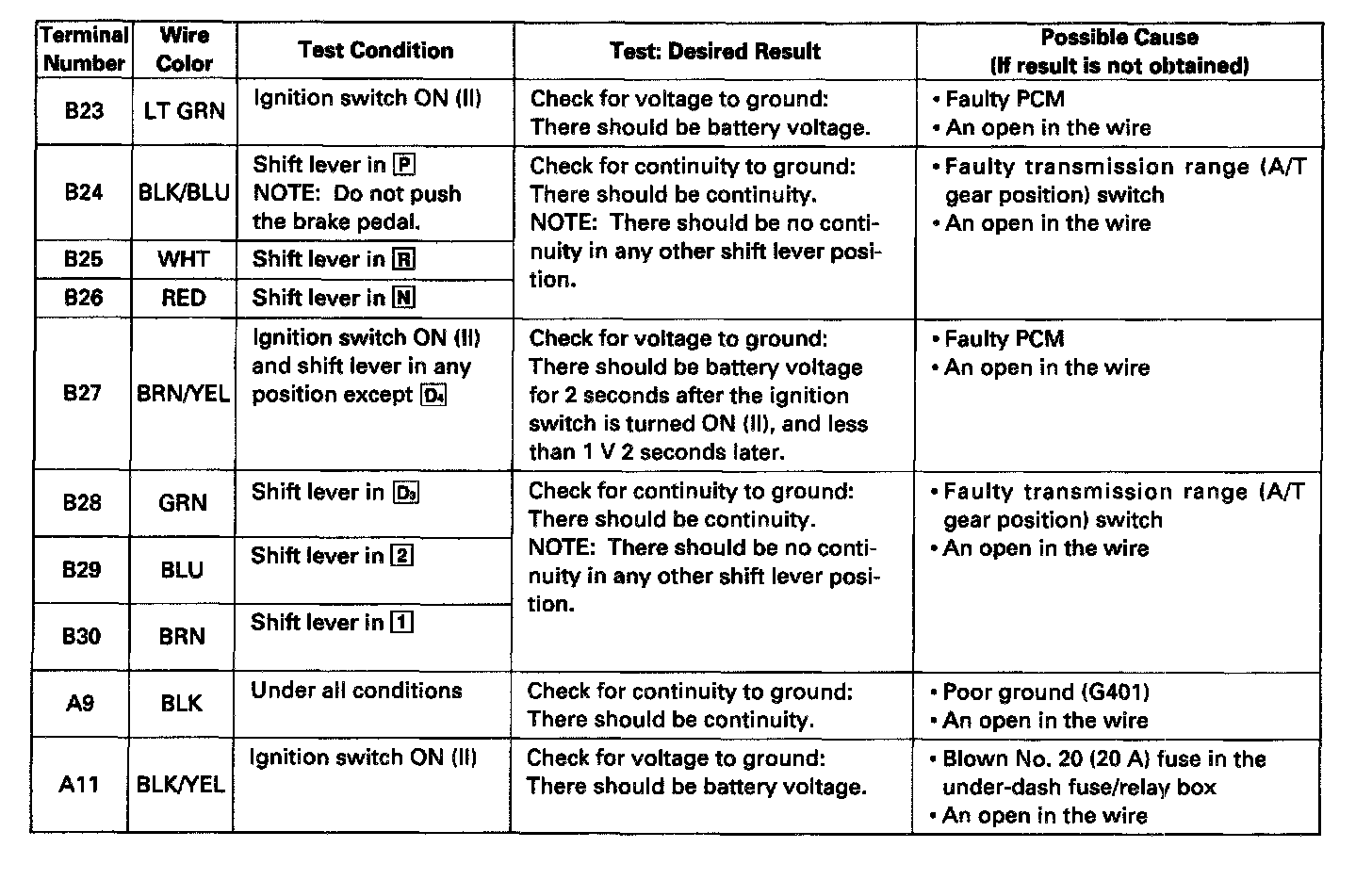 A/T Gear Position Indicator Input Test